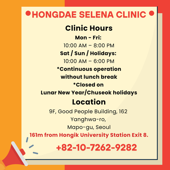 At Hongdae Selena Clinic, we are dedicated to offering premium skincare and dermatology services designed specifically for your needs. Our skilled team blends advanced technology with customized care to provide transformative treatments that enhance your skin's health and beauty. We have created a luxurious, welcoming environment where every detail is focused on delivering a comfortable and exceptional experience. Trust Clinic to guide your skincare journey with results-driven treatments that showcase both sophistication and expertise.